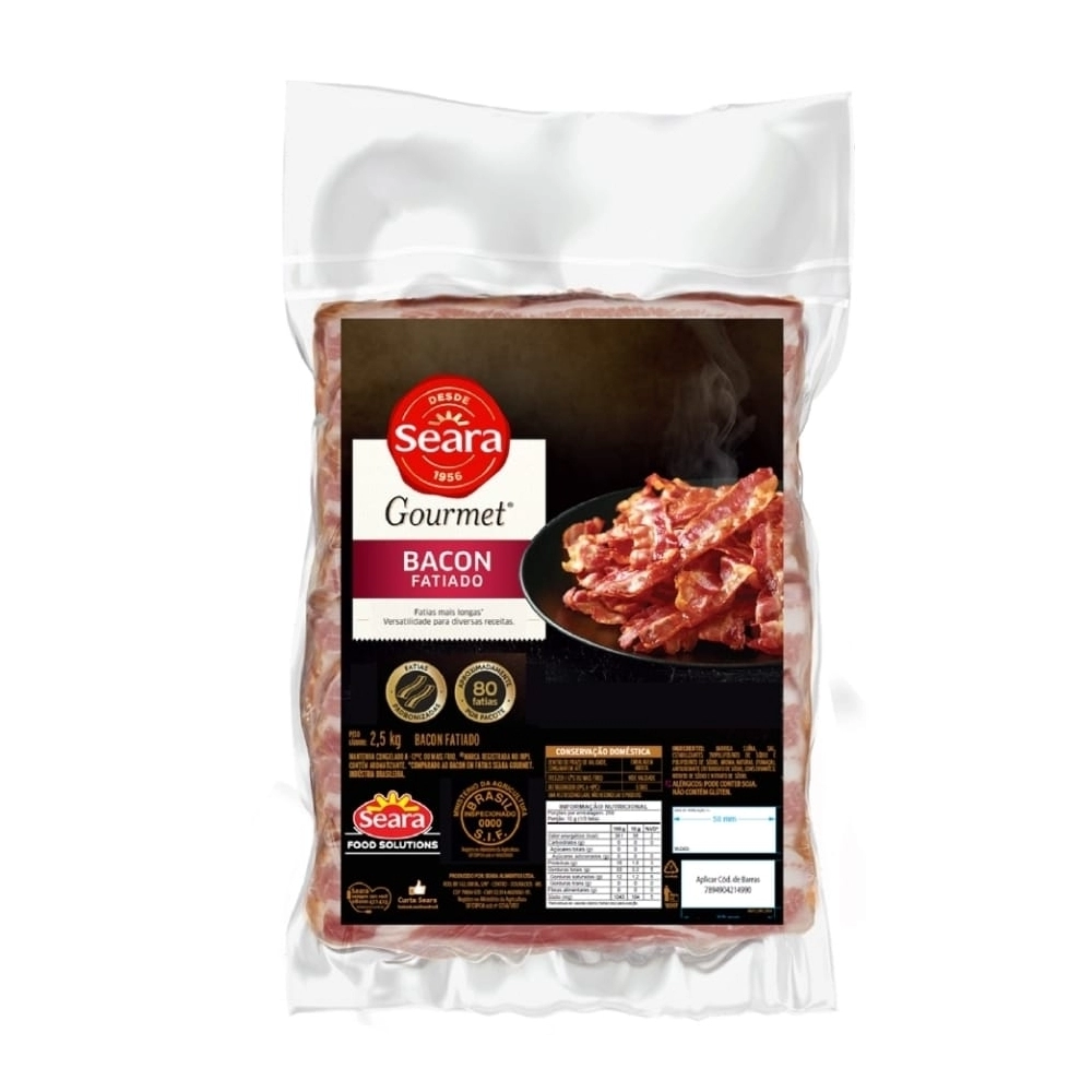 REFRIGERADOS>PROCESSADOS SUINOS>BACON CONGELADO>BACON FATIADO SEARA GOURMET CX6XPCT2,5KG